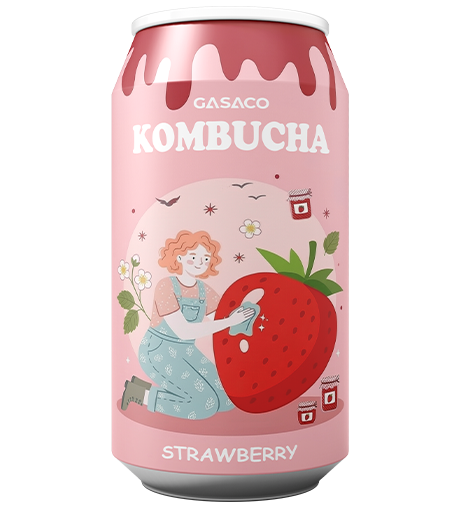 Kobumcha Dâu— Nước uống đóng lon lên men hương trái cây đa vị, tốt cho tiêu hóa | Sản xuất OEM bởi Gasaco