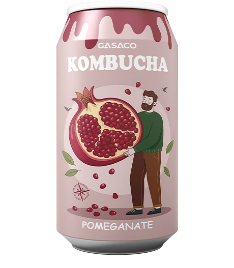 Kobumcha Lựu— Nước uống đóng lon lên men hương trái cây đa vị, tốt cho tiêu hóa | Sản xuất OEM bởi Gasaco